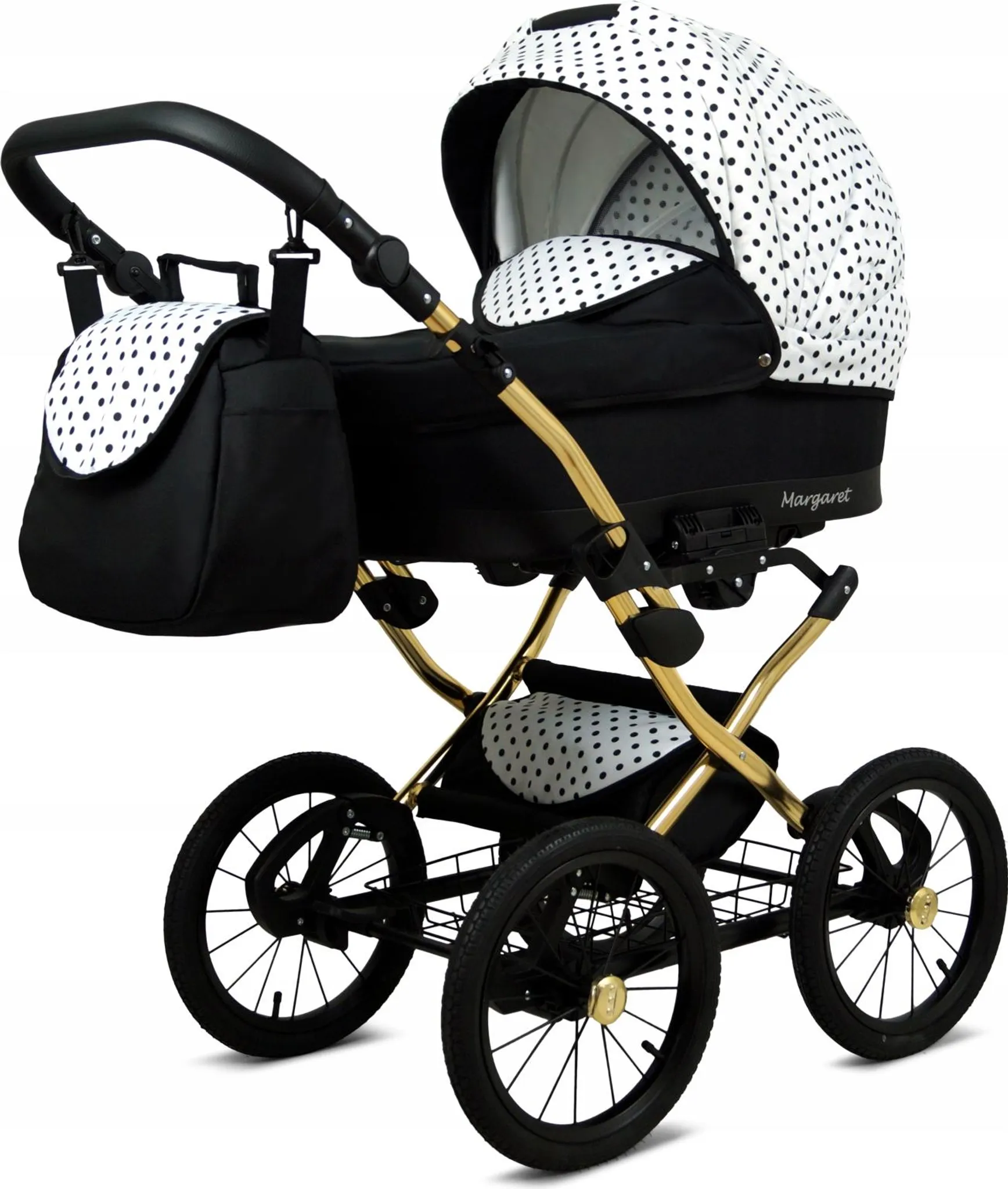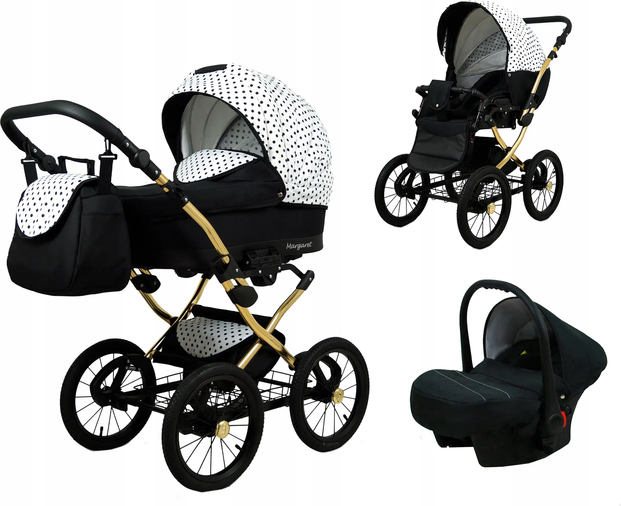 BabyLux® Margaret Gold | 3in1 Kinderwagen Set | Black Dots | Kombikinderwagen | Kinderwagenset