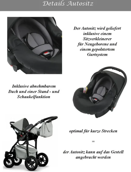 - Multifunktional – ist ein tiefer Kinderwagen, Kinderwagen und Autositz zugleich. Der Kinderwagen verändert sich mit Ihrem Kind und passt sich seinen Bedürfnissen an