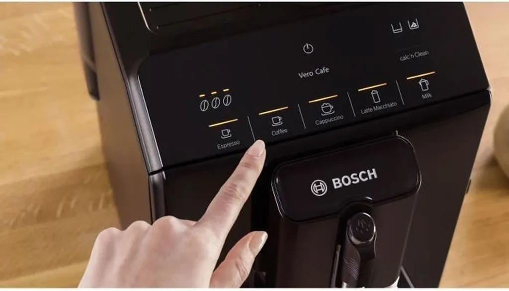 Entdecken Sie die Bosch VeroCafe Serie 2 TIE20119 Espressomaschine mit integriertem Mahlwerk. Mit 1300 W Leistung, einem 1,4-Liter-Wassertank und einem 250-g-Bohnenbehälter liefert sie dank Aroma Max und sensoFlow System Kaffeegenuss in höchster Qualität. Genießen Sie 5 vorprogrammierte Rezepte und die einfache Reinigung dank herausnehmbarer Brühgruppe und Entkalkungsprogramm.