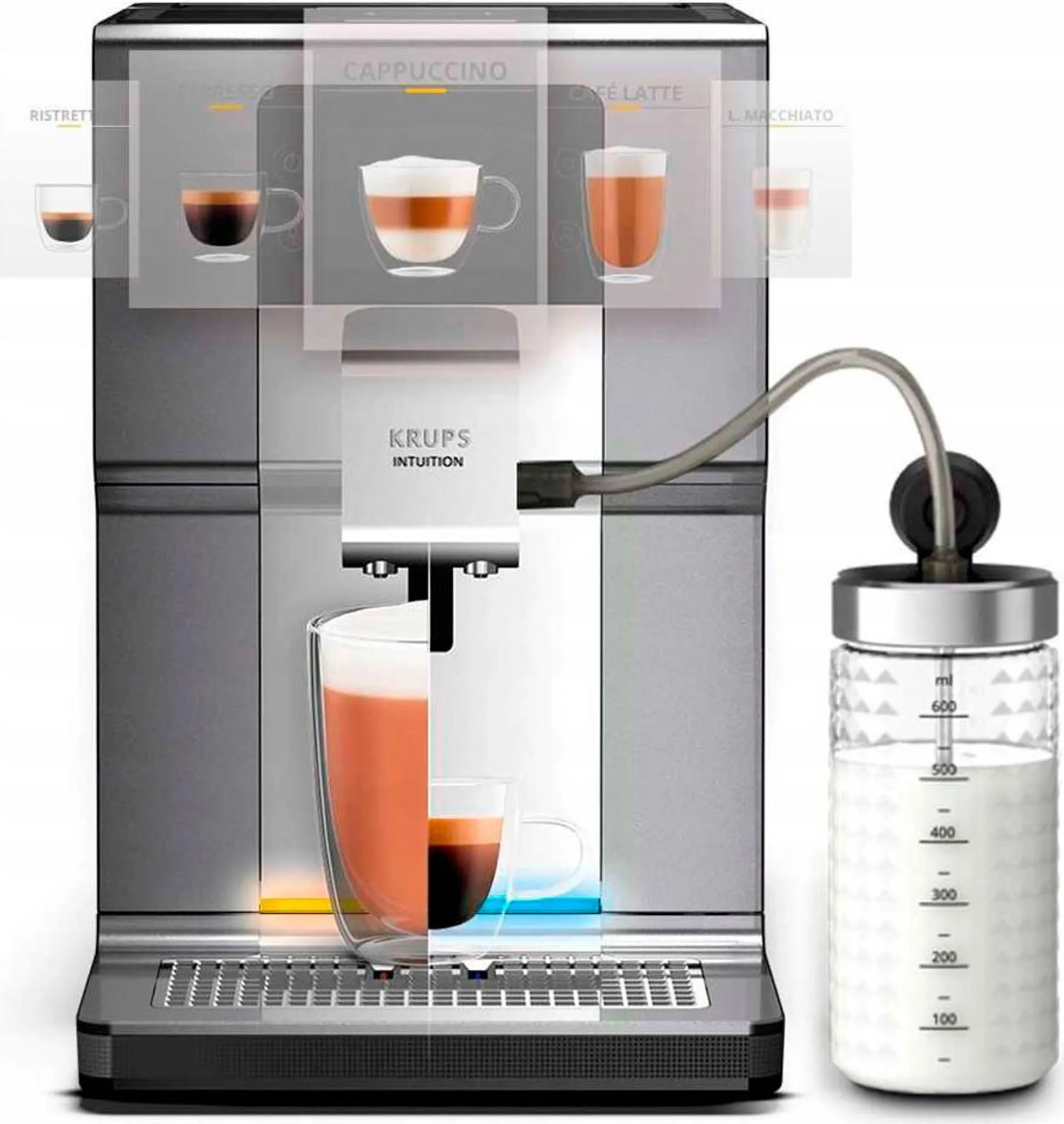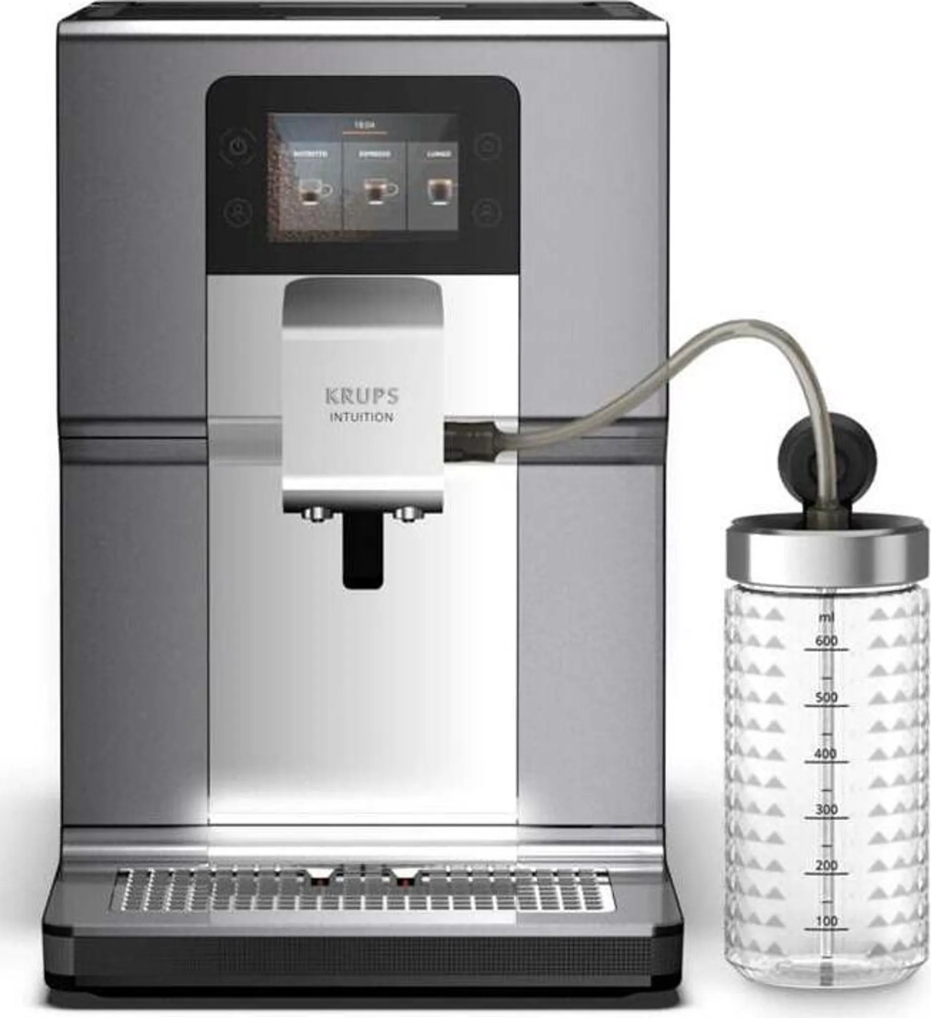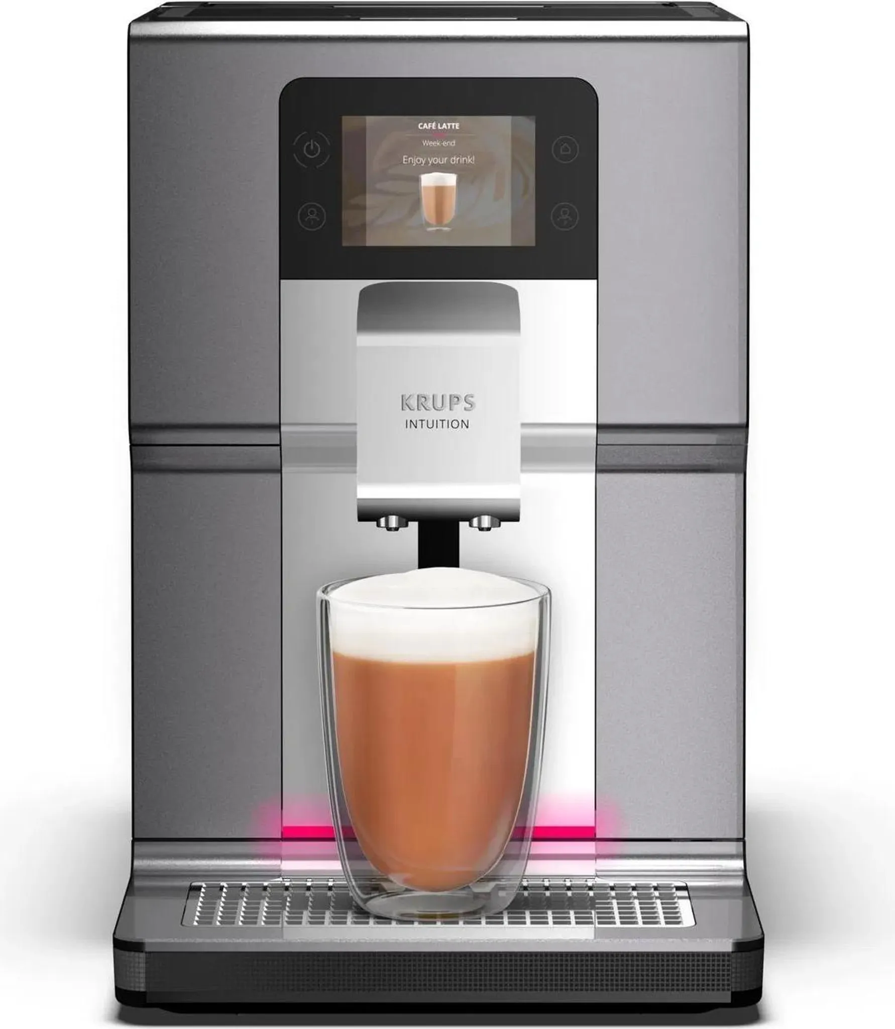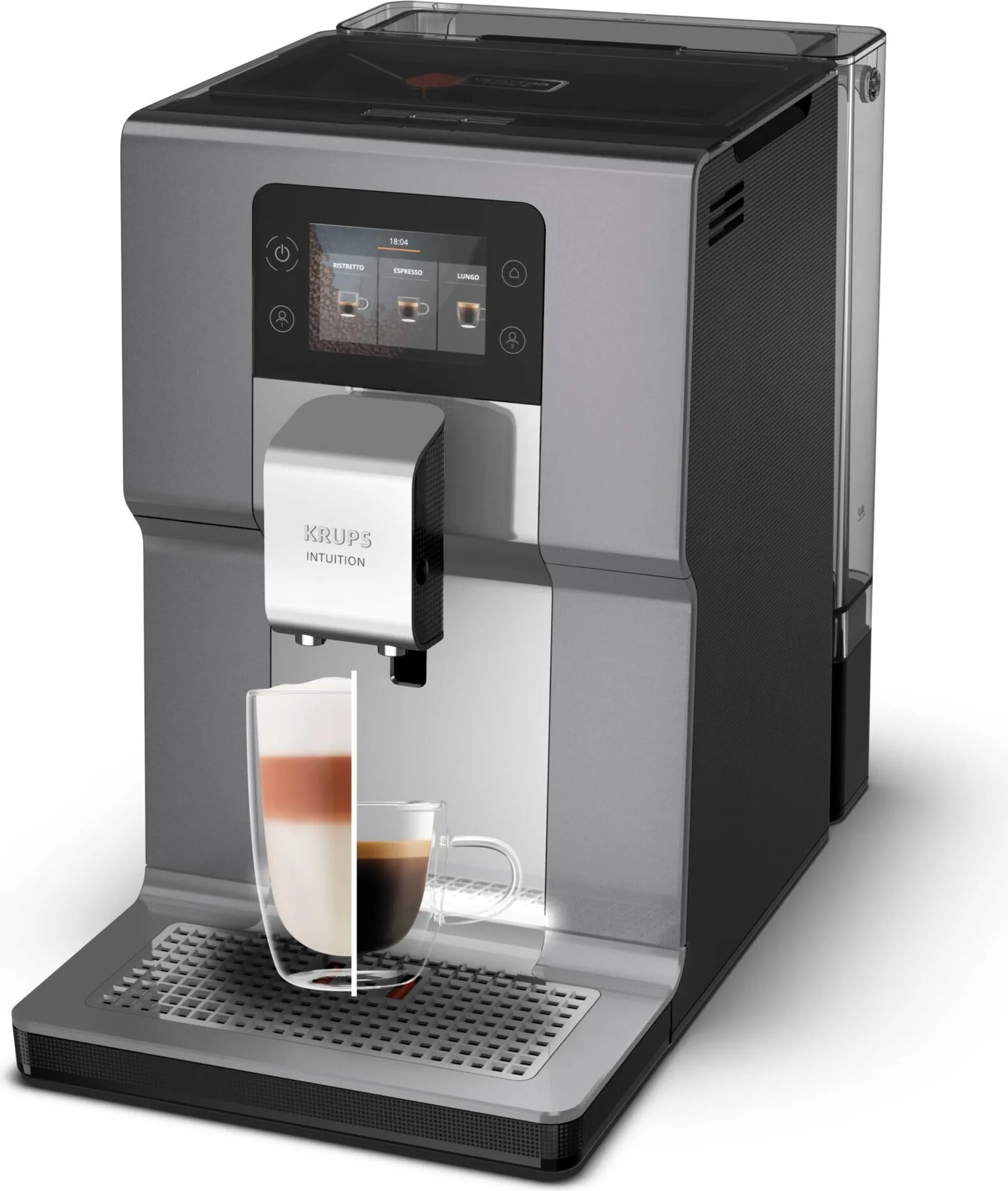 Lass deine KRUPS Intuition Preference+ dein perfekter Kaffeebegleiter sein. Mit der Intuition Preference+ genießen Sie Kaffee mit der innovativen Quattro Force Technologie, vereint in einem Kaffeevollautomaten, der ein einzigartiges Erlebnis verspricht.