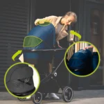 • Lässt sich zusammen mit dem Kindersitz auf ein kompaktes Maß zusammenklappen