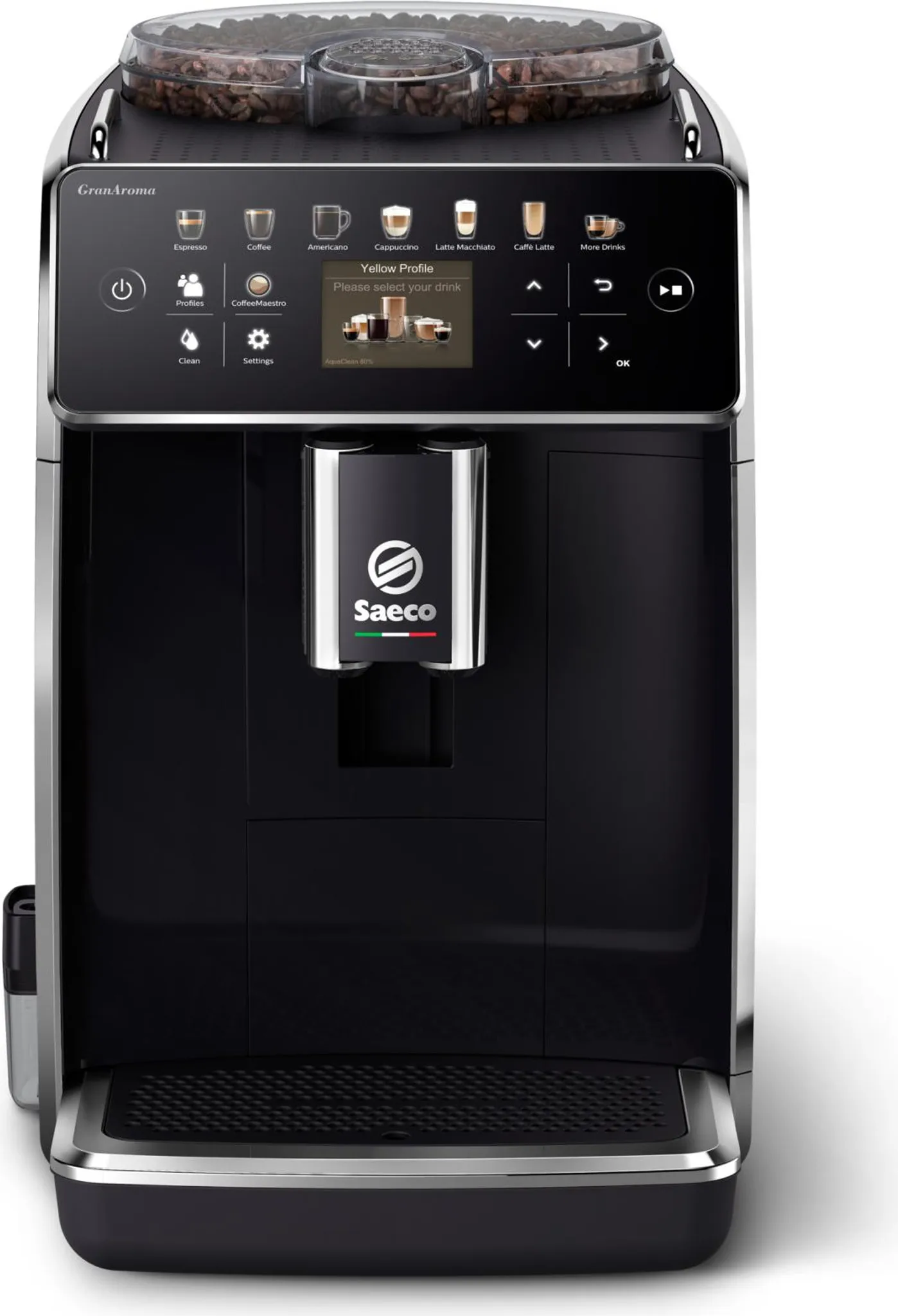 Die Saeco GranAroma ist nicht nur eine Kaffeemaschine, sondern ein echter Verbündeter, um den Tag mit Energie zu beginnen. Dank ihrer fortschrittlichen Technologie können Sie einen perfekten Espresso oder einen cremigen Latte Macchiato mit der gleichen Leichtigkeit und Qualität wie ein professioneller Barista genießen.