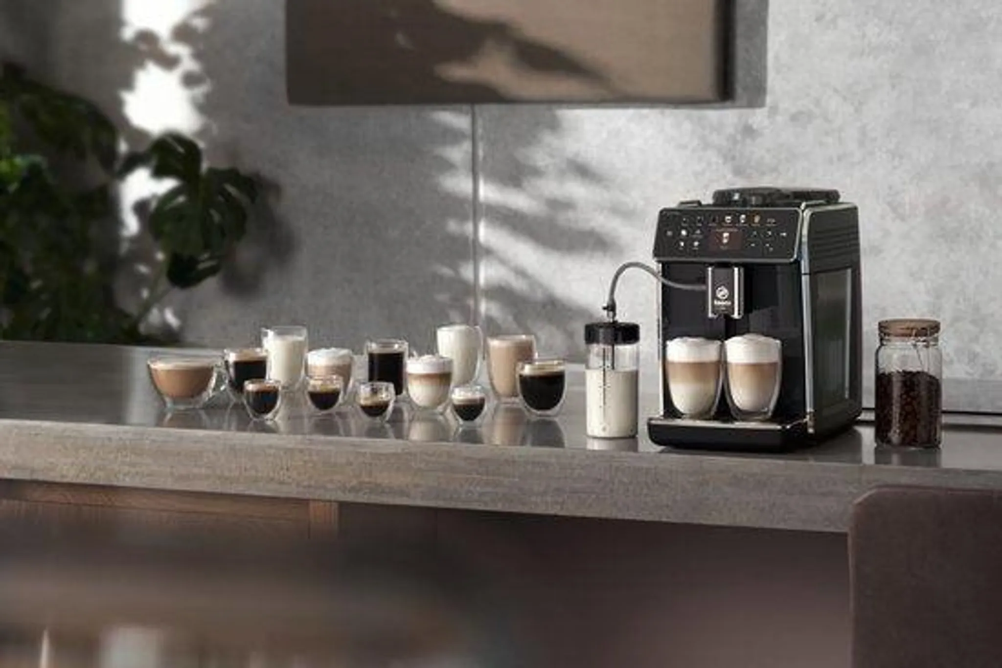 Personalisiere aromatische Kaffeespezialitäten wie Cappuccino und Latte Macchiato intuitiv mit voreingestellten Geschmacksprofilen über das CoffeeMaestro Menü und genieße samtigen Milchschaum aus unserem externen Milchbehälter – auch wenn du zwei Milchgetränke gleichzeitig zubereitest.
